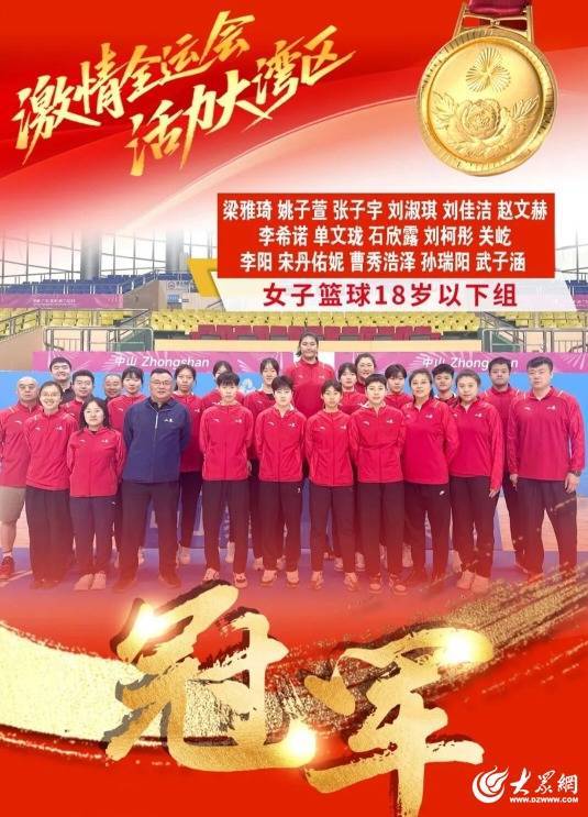 11月13日晚,在第十五届全运会U18女篮决赛中,山东队以96:73力克江苏队夺冠。淄博籍教养员赵文赫、单文珑、宋丹佑妮、曹秀浩泽、孙瑞阳五位小将,全程敢打敢拼,共计孝敬24分,成为夺冠关节力量。