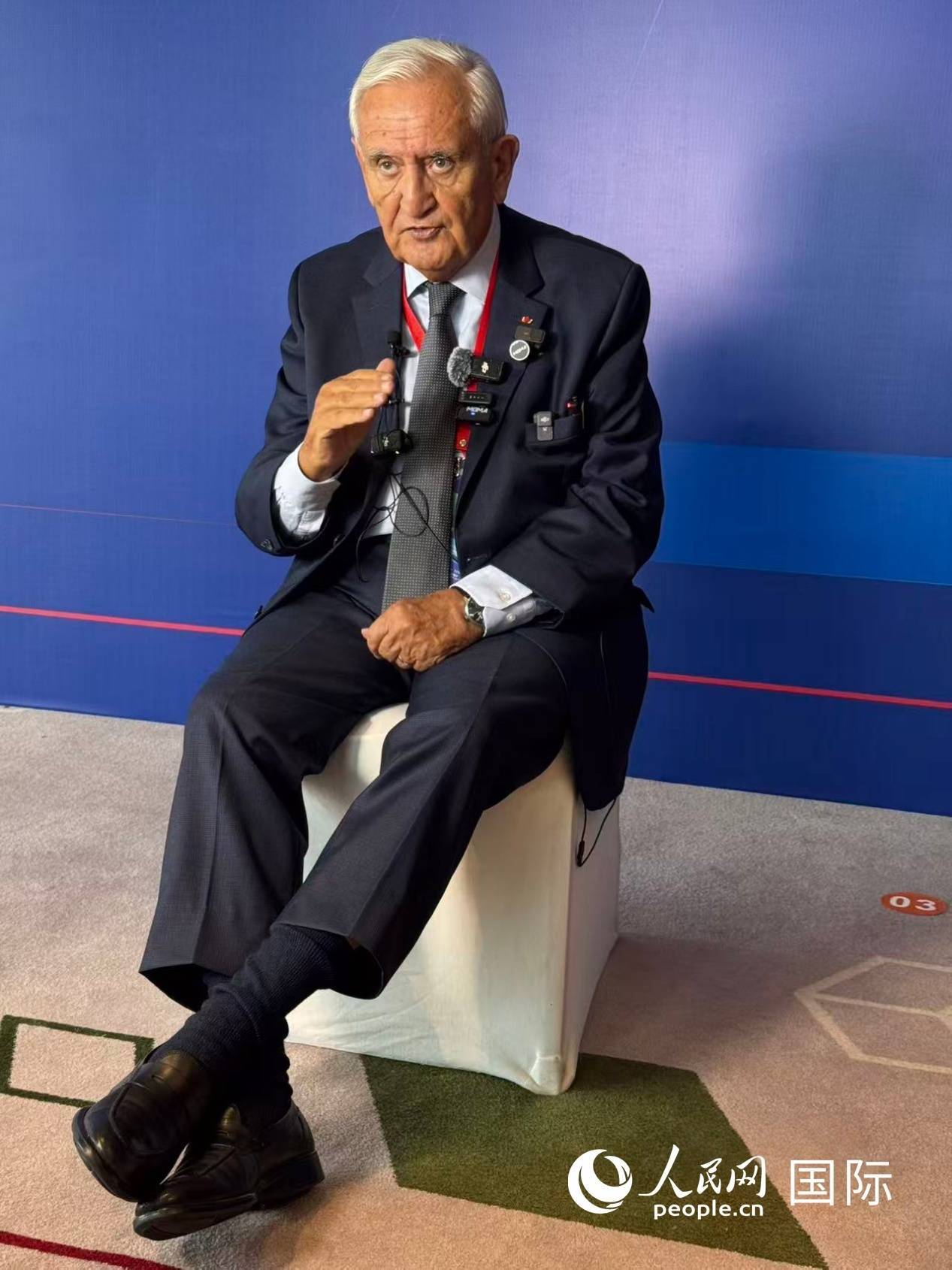法国前总理让-皮埃尔·拉法兰采取东说念主民网采访。东说念主民网记者 谢莹摄